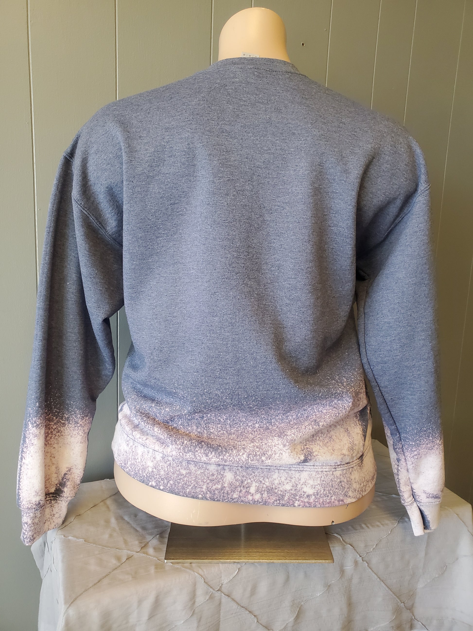 Every sweatshirt that I bleach is ran through a cold rinse cycle in a washer and through a delicate cycle in dryer before sending to you. This is to make sure all bleach has been removed from the garment.