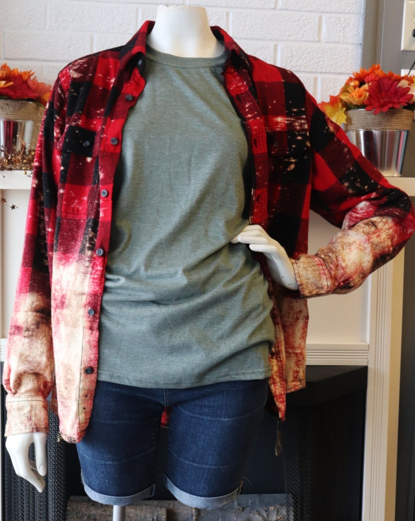 Every flannel is hand bleached, and acid-washed to perfection. No one will be alike.