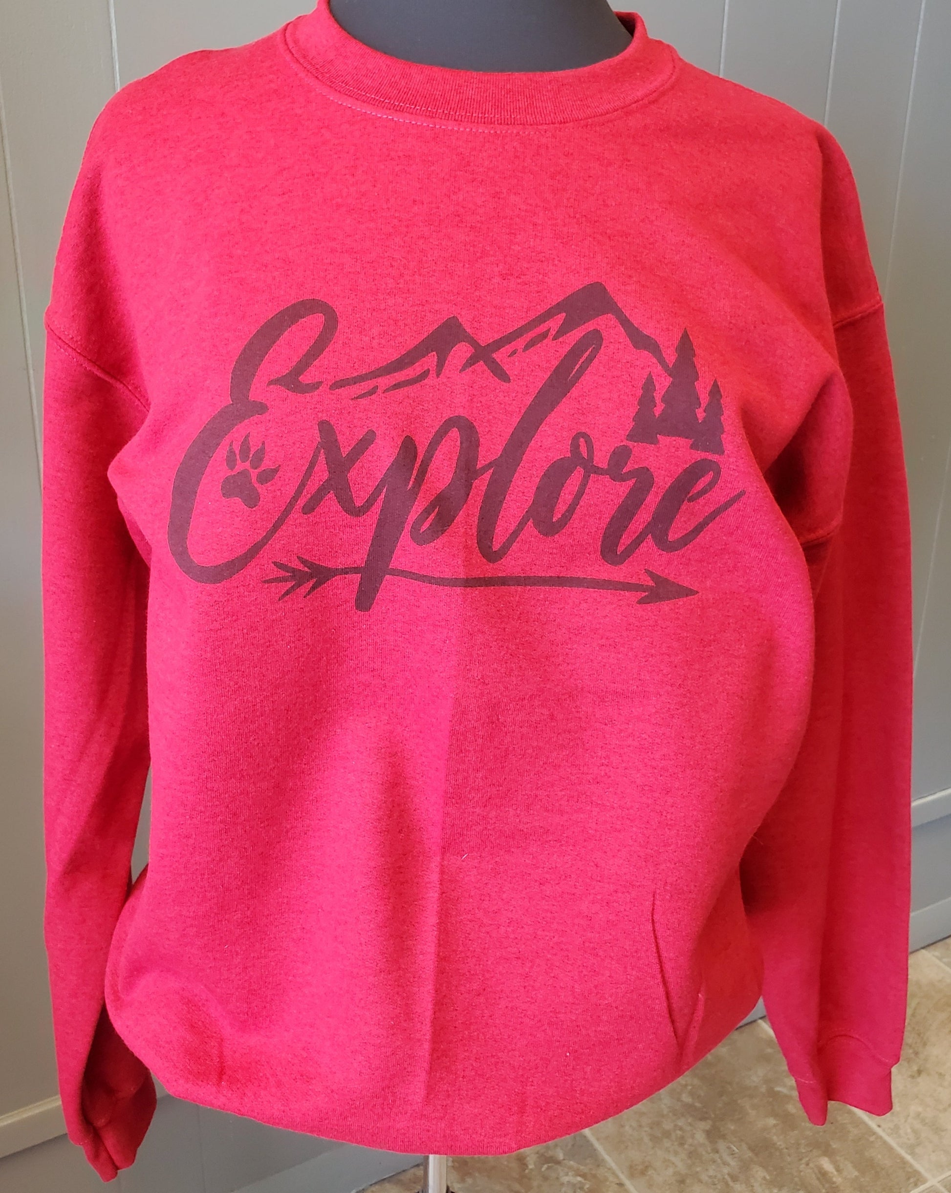 This sweatshirt is super soft. The shirts are made with high quality products. Once these designs are pressed, they're permanently dyed into the fabric. This is not a printed iron on transfer. The end result will have a vintage look.