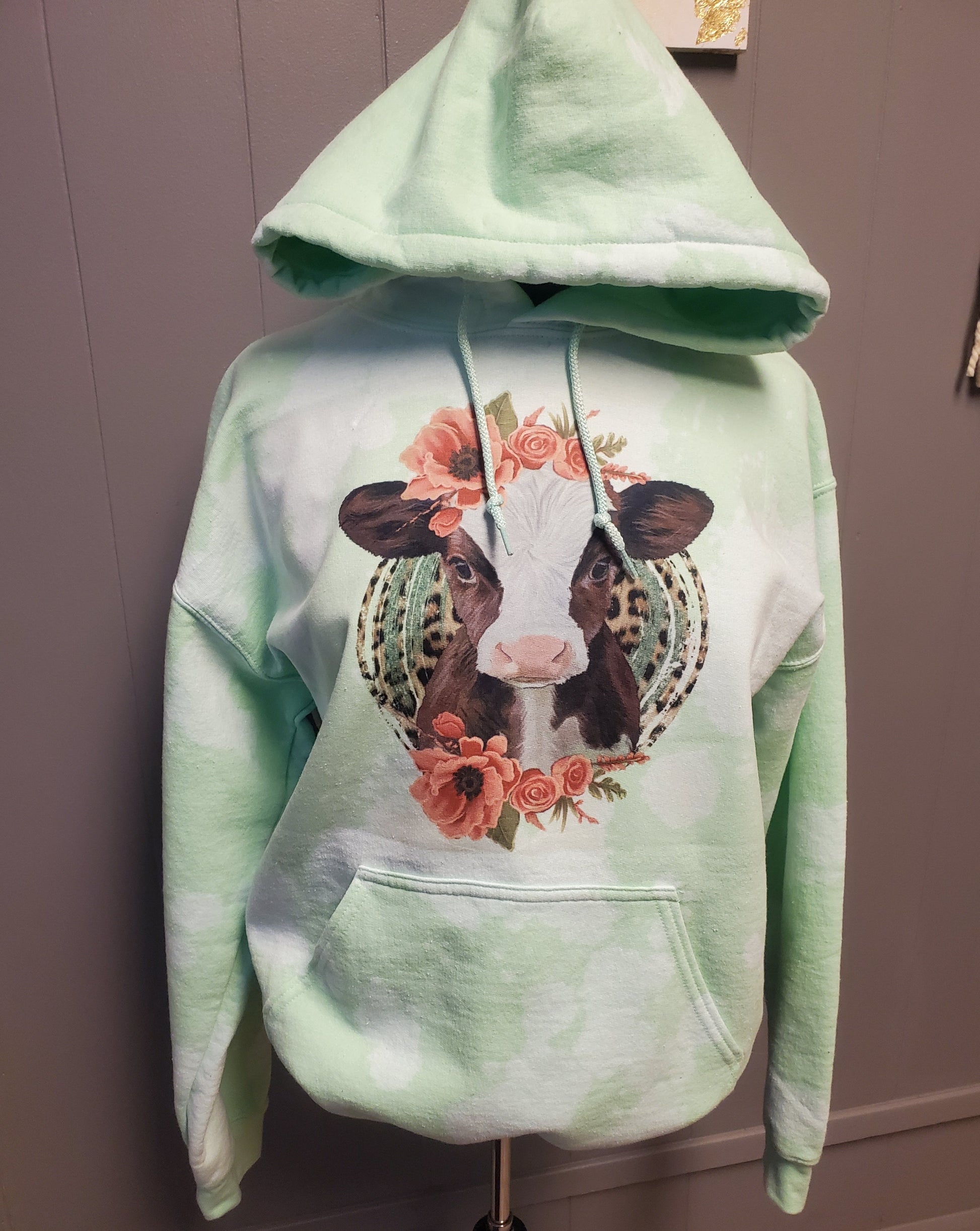 The hoodie is super soft. It is bleached by hand so no two hoodies will ever look alike and the hoodies are made with high quality products. Once these designs are pressed, they're permanently dyed into the fabric. This is not a printed iron on transfer. The end result will have a vintage look.