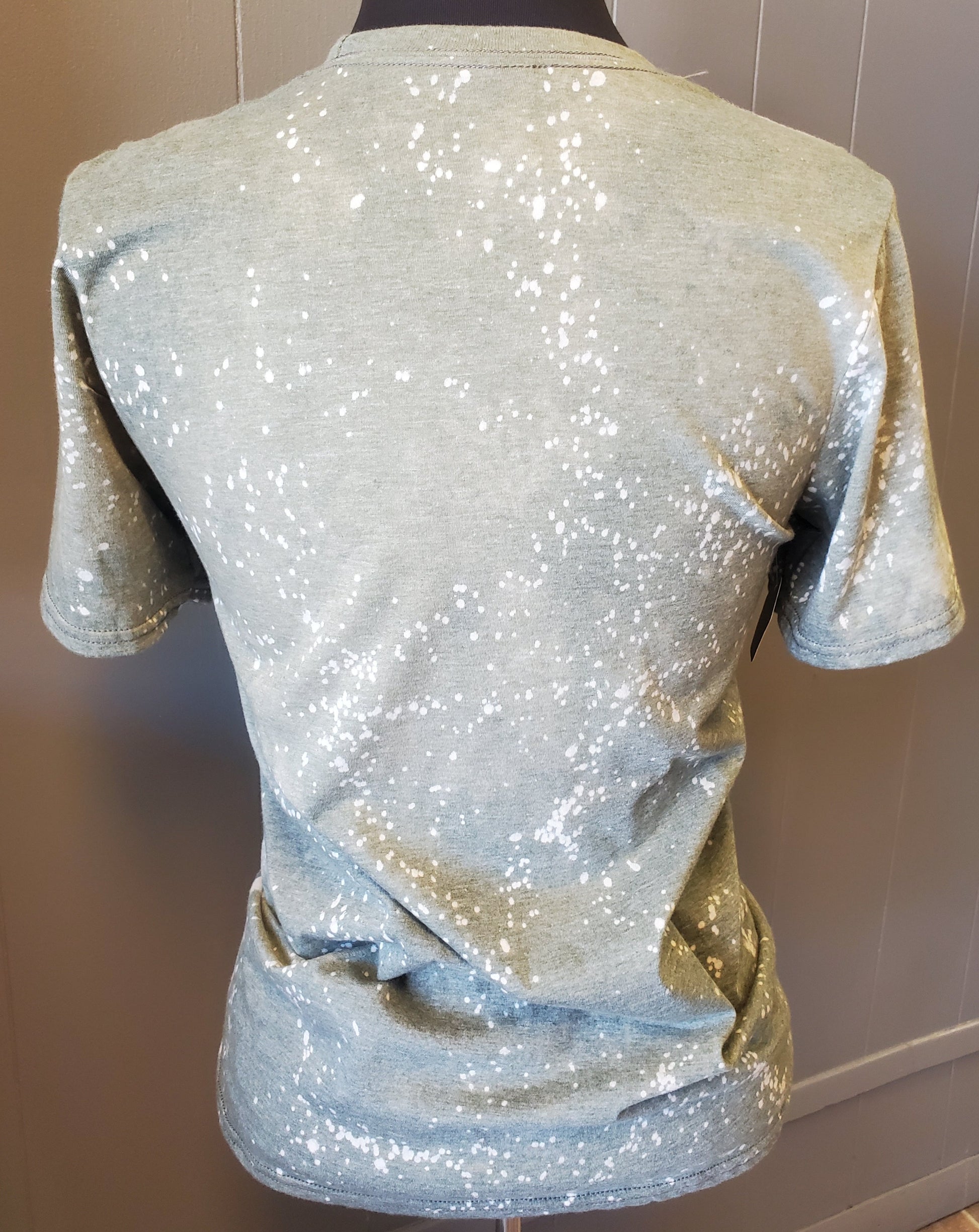 Every t-shirt that I bleach is ran through a cold rinse cycle in a washer and through a delicate cycle in dryer before sending to you. This is to make sure all bleach has been removed from the garment.
