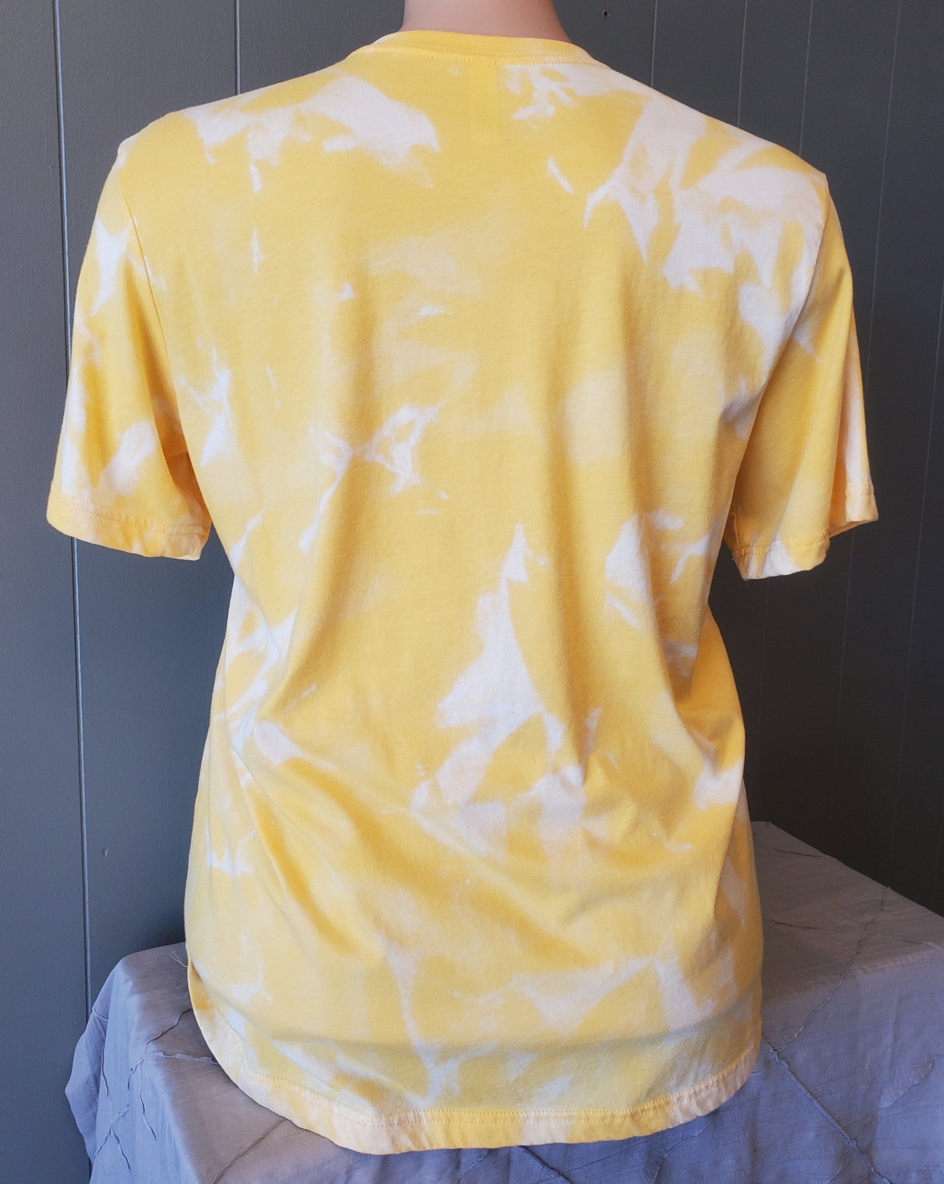 Every t-shirt that I bleach is ran through a cold rinse cycle in a washer and through a delicate cycle in dryer before sending to you. This is to make sure all bleach has been removed from the garment.
