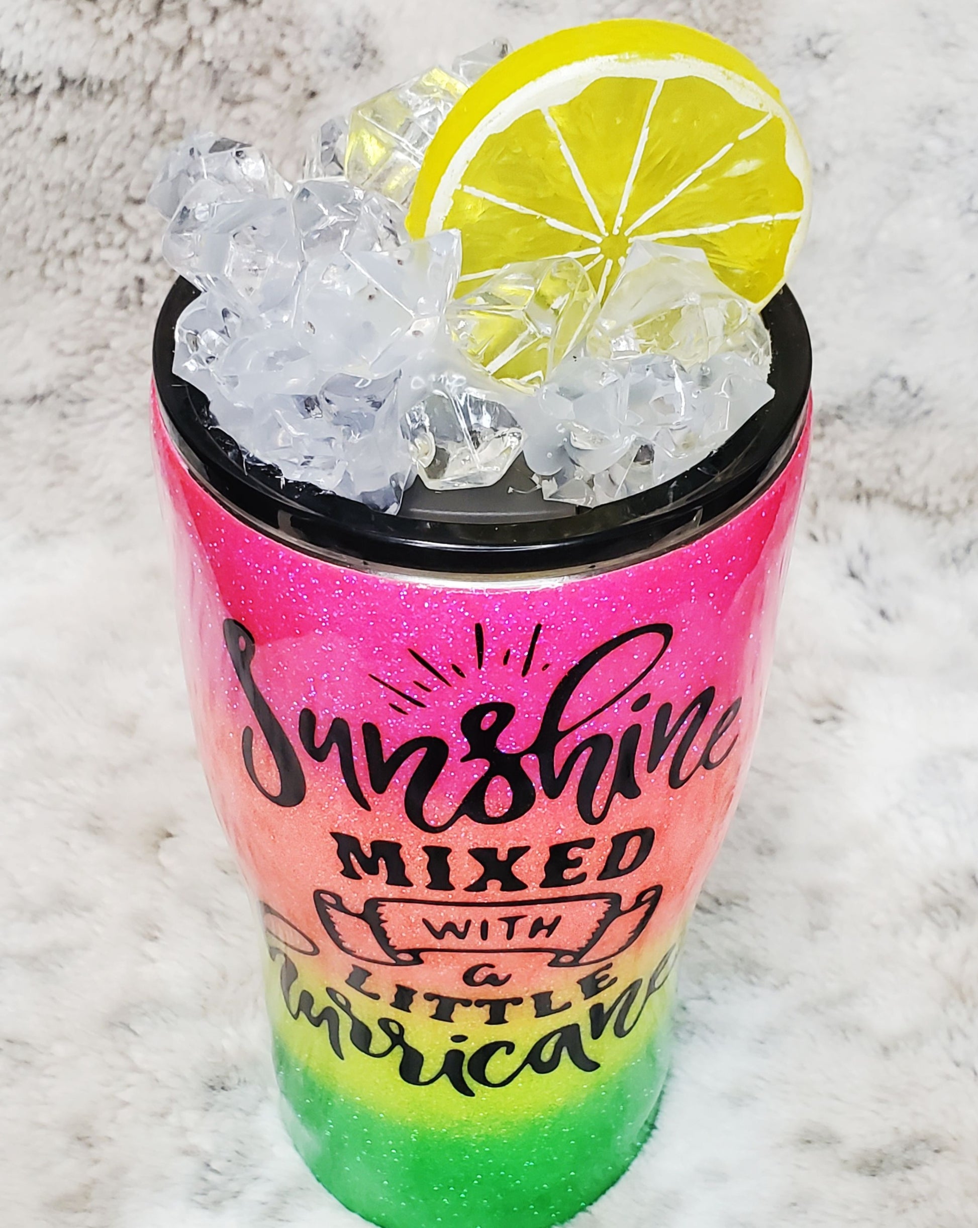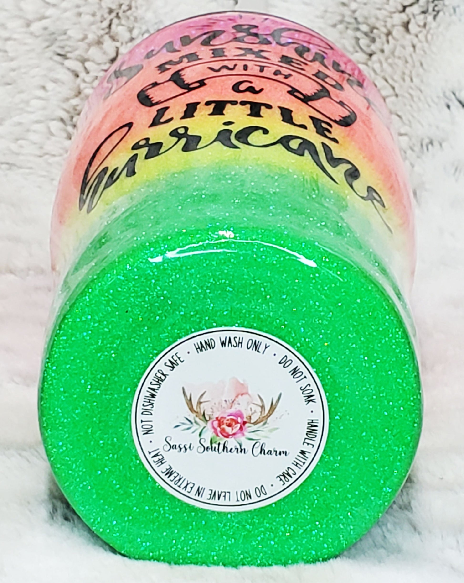Each design is sealed under a coat of durable clear coat epoxy. This protects the original design and keeps glitter elements and decals from peeling off.