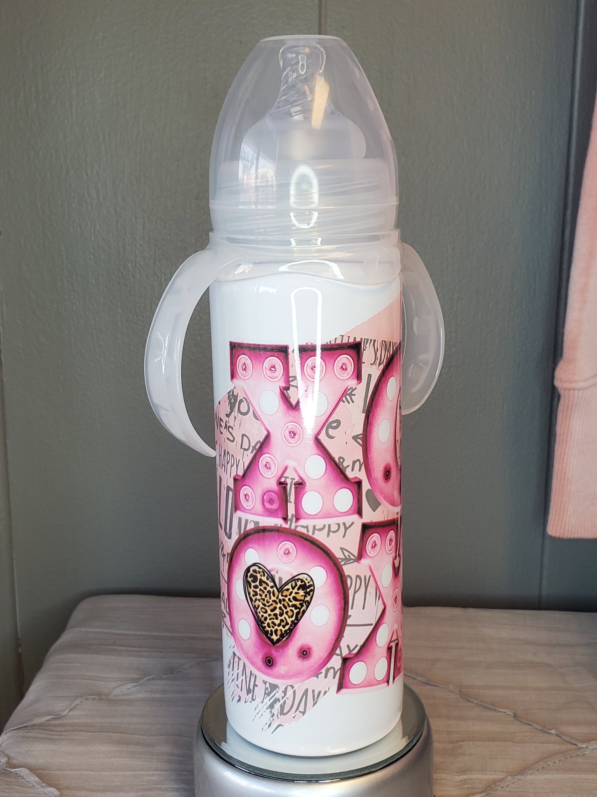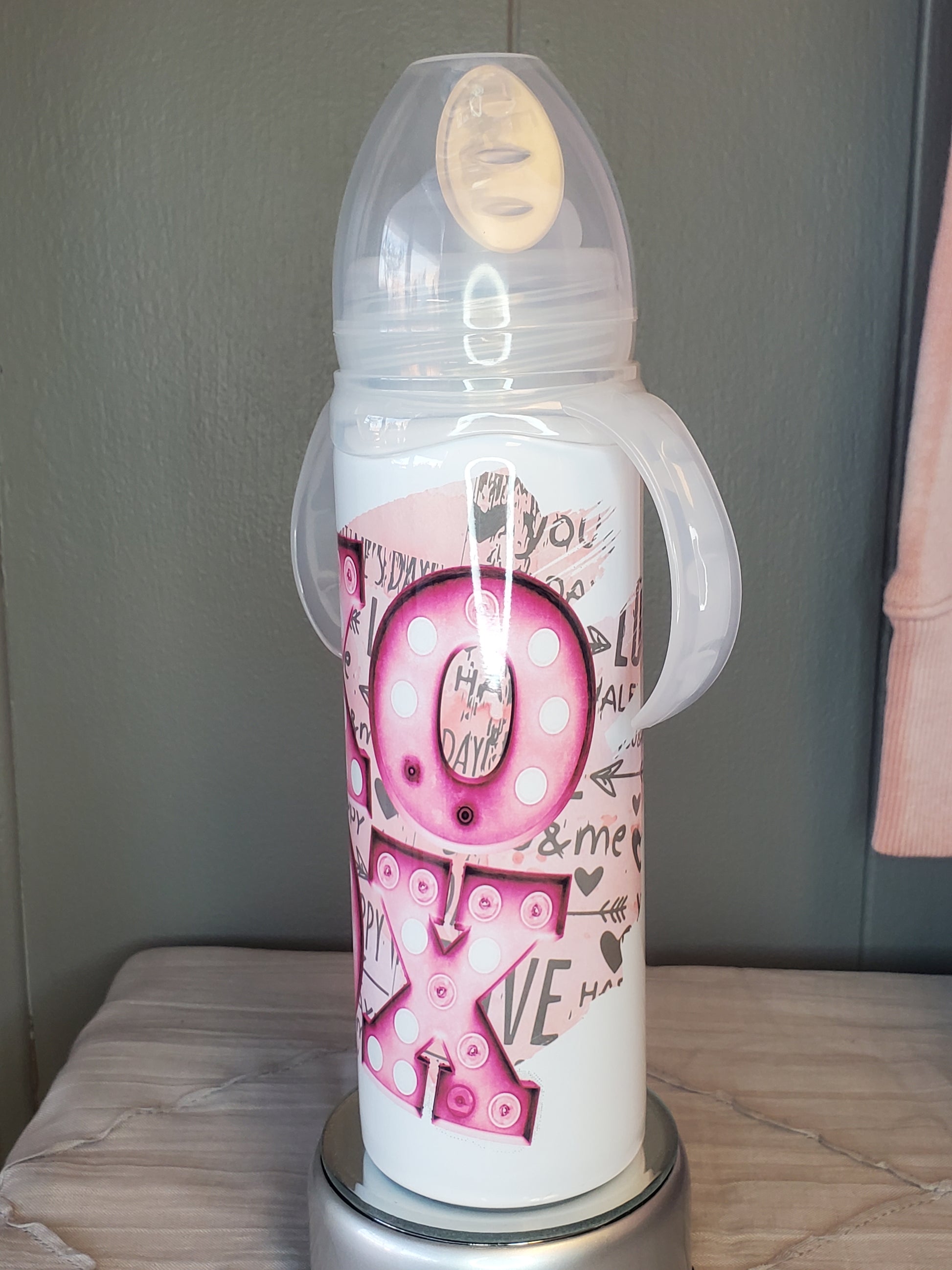 XOXO 8oz. stainless steel baby bottle tumbler.